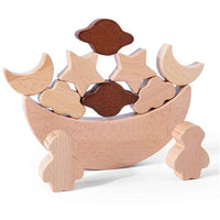 月と星をモチーフにした木製バランス積み木セットです。カラフルなブロックを積み重ねて遊びながら、集中力やバランス感覚を自然に育てます。