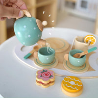 厳選された天然木を使用し、丁寧に仕上げられた木製ままごとティーセットです。紅茶カップやポット、スイーツパーツが揃っており、子どもたちの想像力を広げながら楽しくごっこ遊びができます。